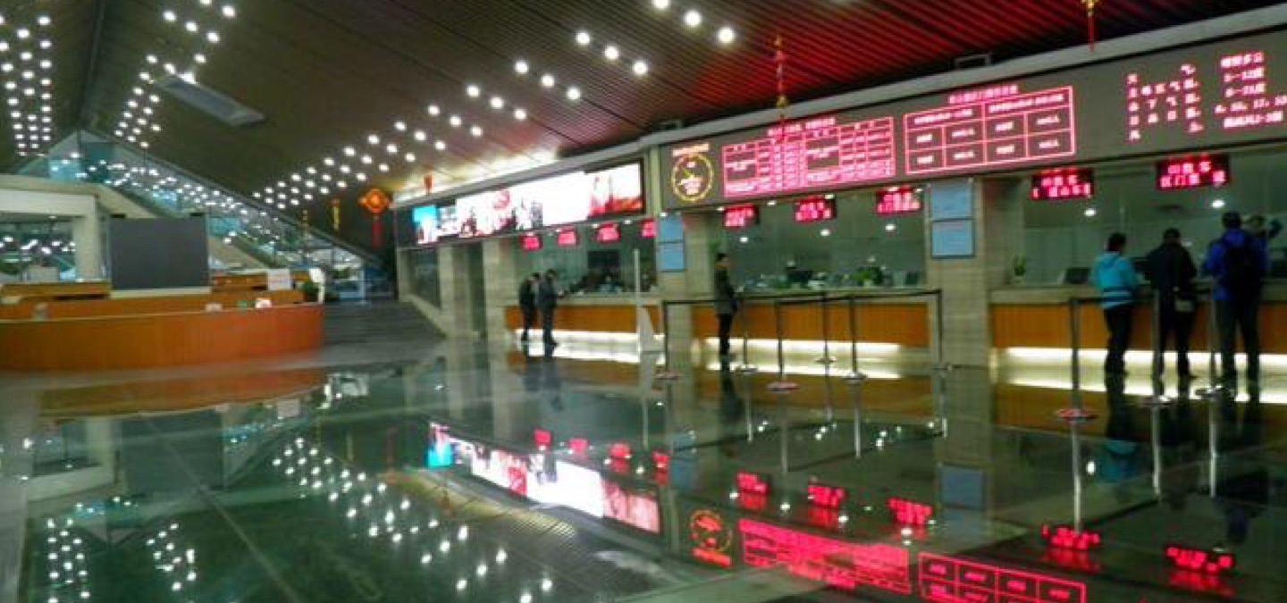 生态广场包括游客接待中、票务中心、导游服务中心、华山博物馆、生态停车场、直升机停机坪、旅游纪念品购物超市、快餐厅等。3.7万平方米的音乐喷泉广场围绕“洞天福地,宝莲祥瑞”的设计主题,将华山之雄,蕴于神话传说中,动静相宜、虚实结合,于北侧31米高的宝莲灯主题雕塑交相辉映。喷泉喷射高度最高可达40米,其中“阴阳图谱,太极水八卦”喷泉可旋转变化,新颖别致。广场的植物配置都是按照植物链科学设计、精心栽培、合理布局。左手边是24孝主题园。右手边是生态停车场,广场共设有14个停车场,3500多个停车位,2号停车场绿色大巴士景区区间车,游客持华山门票可免费乘坐,去游览华山景区其他景点——西岳庙、仙峪、玉泉院。售票大厅门口大石头上刻画的是华山全景图,方便游客了解华山景区概况、上山路线以及华阴的交通路线。售票大厅内,脚下是华山实景缩小沙盘,是以1:800的实景缩小比例设计的。售票大厅内设有13个窗口同时售票,正对门口的是游客咨询服务台,售票大厅最里面,是游客上下山乘车和下车的集散中心。